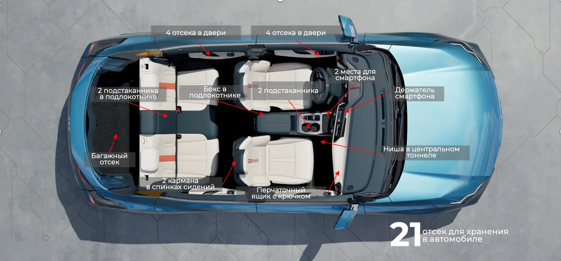Сиденья адаптированы для людей ростом выше 1,8 метра, а кресло водителя дополнительно оборудовано системой вентиляции