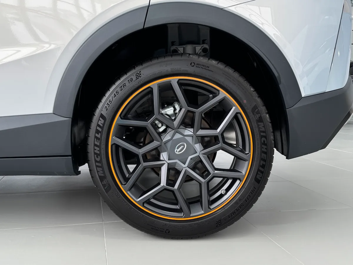 19-дюймовые диски в пакете R-Style. Граненый дизайн. Черные спицы. Оранжевая отделка. Шины Michelin Pilot Sport 4 (235 45 R19)